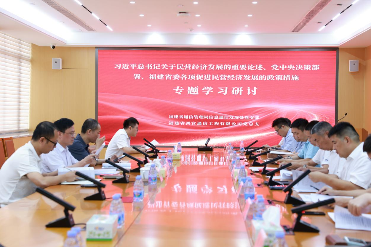 2025年9月24日,福建省通信管理局信息通信發(fā)展處黨支部與福建鴻官通信有限公司黨總支在鴻官公司黨建樓六樓會議室聯(lián)合開展黨建聯(lián)學(xué)聯(lián)建專題學(xué)習(xí)暨交流座談會。雙方黨組織黨員代表參加本次活動。與會黨員認(rèn)真研讀了習(xí)近平總書記關(guān)于民營經(jīng)濟(jì)發(fā)展的重要論述,傳達(dá)學(xué)習(xí)....